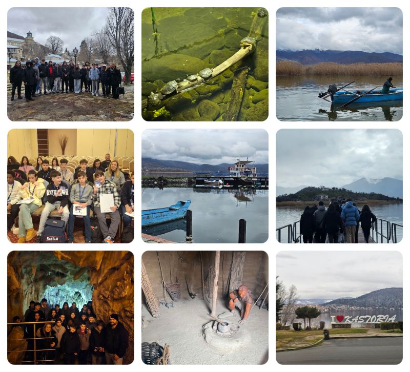 Οι μαθητές και οι μαθήτριες είχαν την ευκαιρία να γνωρίσουν την πλούσια φυσική και πολιτιστική κληρονομιά της περιοχής. Επισκέφθηκαν το γραφικό Νυμφαίο, θαύμασαν το απαράμιλλο τοπίο στις Πρέσπες και περιηγήθηκαν στον Άγιο Αχίλλειο και στους Ψαράδες, όπου γευμάτισαν σε παραδοσιακή ταβέρνα απολαμβάνοντας τοπικές γεύσεις και τη ζεστή φιλοξενία των κατοίκων. Η επίσκεψη στον προϊστορικό λιμναίο οικισμό του Δισπηλιό αποτέλεσε ένα ακόμη ζωντανό μάθημα ιστορίας, ενώ το εντυπωσιακό Σπήλαιο του Δράκου και το Ενυδρείο Καστοριάς συμπλήρωσαν μοναδικά την εμπειρία. Ο τελευταίος μας περίπατος στα γραφικά σοκάκια της συνοικίας Ντολτσό με τα αρχοντικά μας εντυπωσίασε!