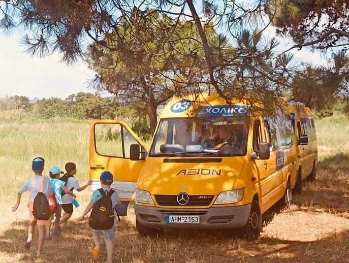 - Η μετακίνηση γίνεται με σχολικά λεωφορεία.