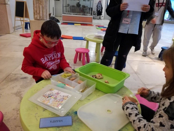Εν συνεχεία, τα παιδιά είχαν την ευκαιρία να γίνουν για λίγο τα ίδια αρχαιολόγοι, εργάτες και συντηρητές! Κατά τη διάρκεια ενός ευχάριστου ομαδικού παιχνιδιού σκάψαμε στο χώμα και ανακαλύψαμε κρυμμένα αντικείμενα. Έπειτα καθαρίσαμε τα ευρήματά μας και τα καταγράψαμε στο φύλλο εργασίας! Στο τέλος ξεναγηθήκαμε στους υπόλοιπους χώρους του μουσείου και ενημερωθήκαμε για τα εκθέματά του!