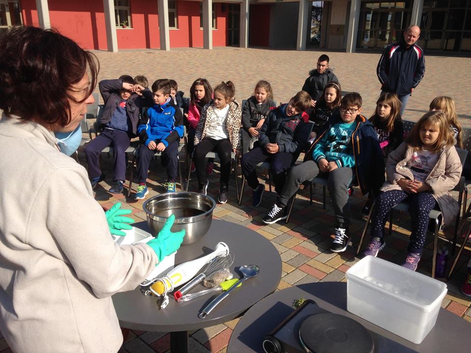 Στα πλαίσια του εκπαιδευτικού προγράμματος πήραν μέρος στην περισυλλογή των ελιών από τον ελαιώνα του σχολείου και στη συνέχεια η Α’ και η Β’ τάξη έμαθαν την πορεία που ακολουθούν οι ελιές μέχρι να γίνουν βρώσιμες και να φτάσουν… στο πιάτο μας! Η Γ’ τάξη γνώρισε μια άλλη πλευρά, αυτήν της επεξεργασίας της ελιάς στα ελαιοτριβεία για την παραγωγή λαδιού, ενώ η Δ’ έμαθε τα πάντα γύρω από την παρασκευή αγνού σαπουνιού με πρώτη ύλη το παρθένο ελαιόλαδο, βάζοντας έτσι τις πρώτες βάσεις για τη χημεία και τις αντιδράσεις των ουσιών.