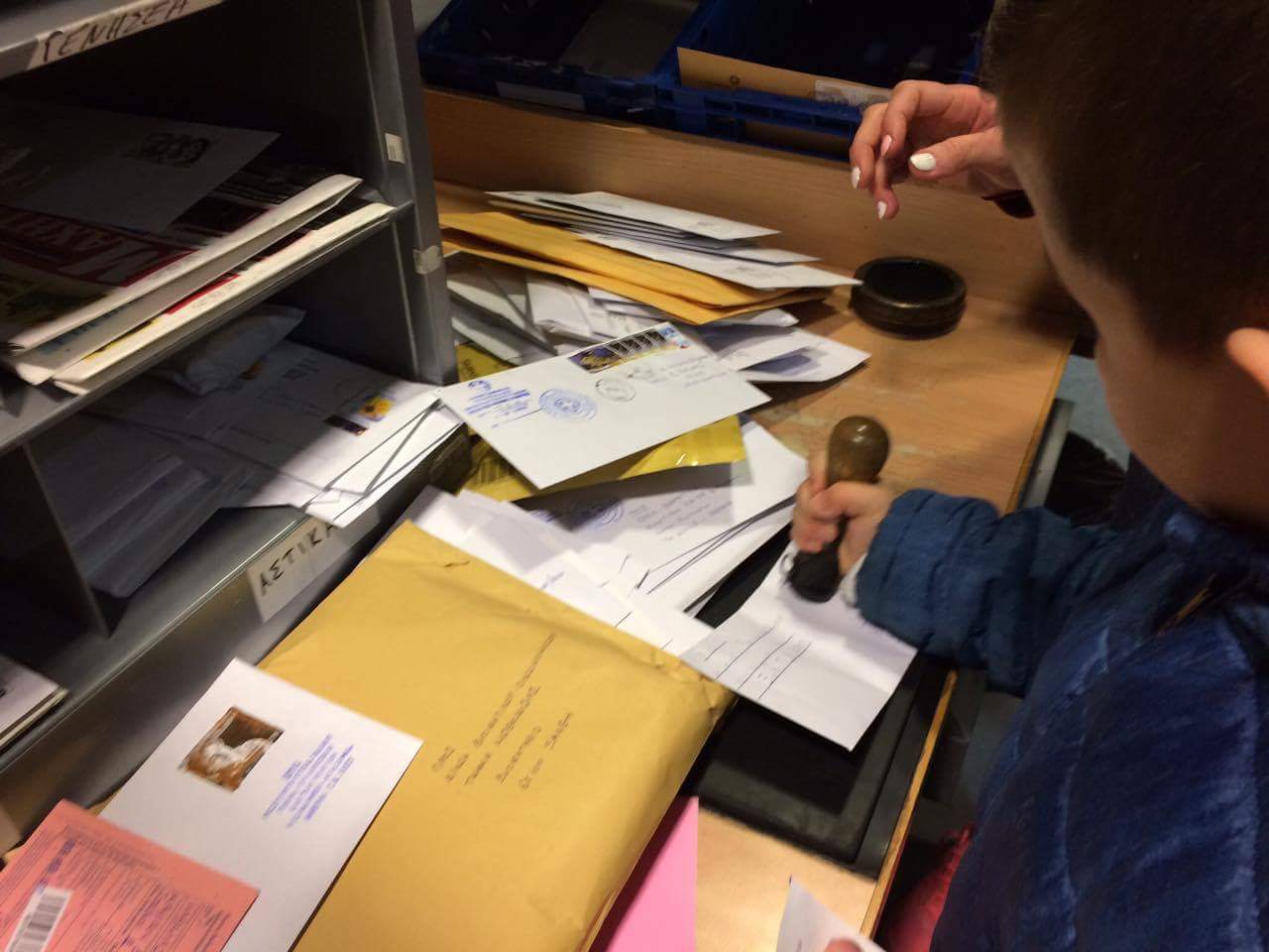 Επόμενος σταθμός το Ταχυδρομείο Ξάνθης. Εκεί, αφού ξεναγηθήκαμε στο χώρο και ενημερωθήκαμε από τους υπαλλήλους για τη διαδικασία αποστολής και λήψης γραμμάτων, κολλήσαμε και εμείς με τη σειρά μας τα γραμματόσημα πάνω στους φακέλους και τους αφήσαμε να ξεκινήσουν το δικό τους ταξίδι.