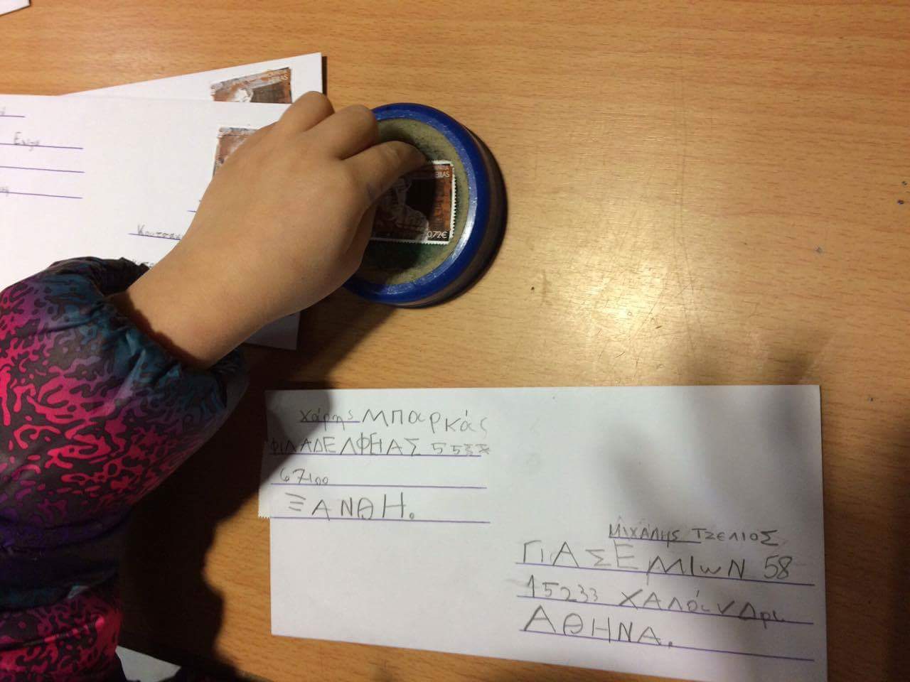Αφού λοιπόν γράψαμε τα νέα μας και ρωτήσαμε για τα δικά τους, εσωκλείσαμε το γράμμα σε ένα φάκελο, έξω από τον οποίο συμπληρώσαμε όλα τα απαραίτητα στοιχεία προκειμένου να φτάσει στον προορισμό του.