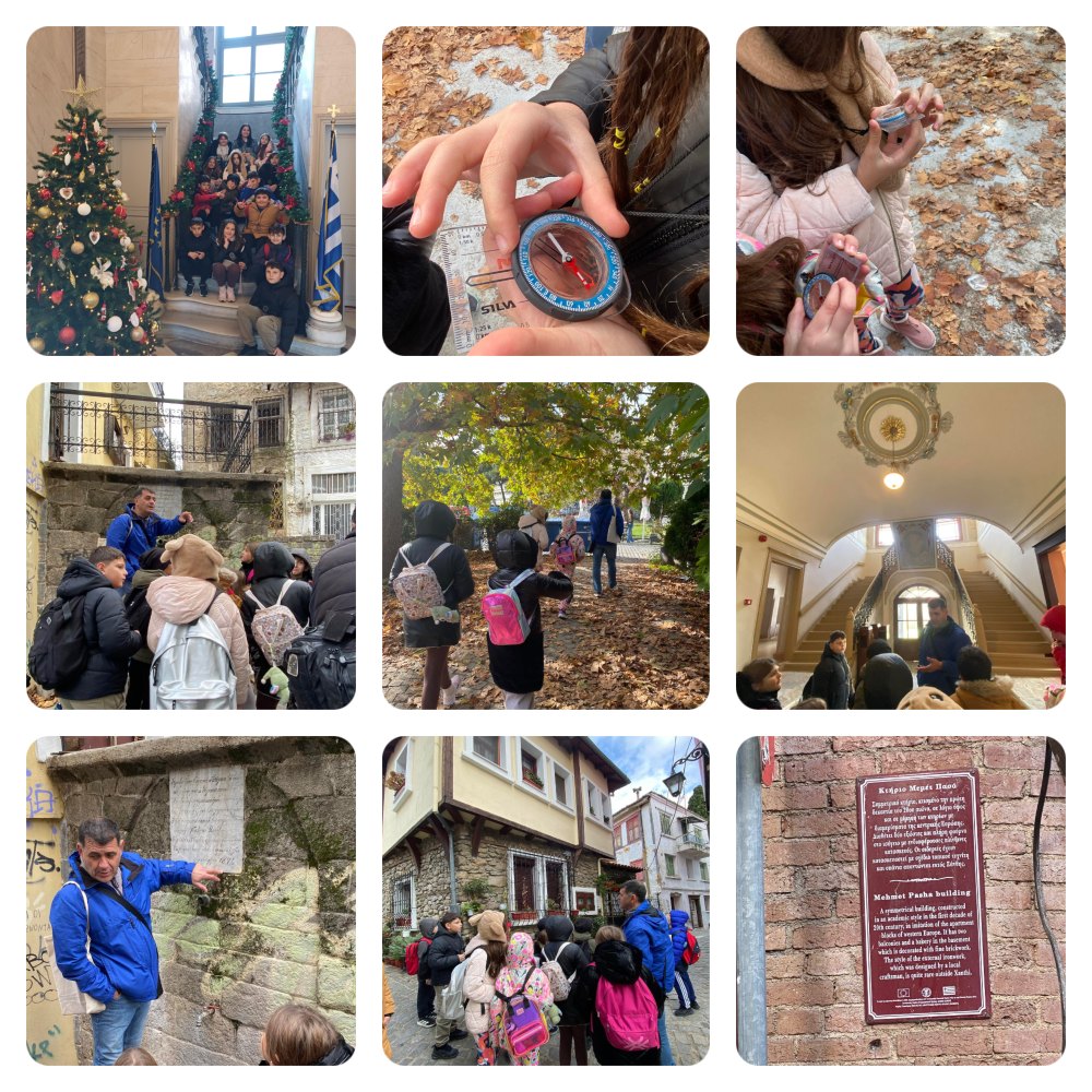 Οι μαθητές της Δ΄ τάξης ξεκίνησαν ένα μικρό ταξίδι στον χρόνο μέσα από το πρόγραμμα «Ο θησαυρός της παλιάς πόλης». Με πυξίδα στο χέρι και οδηγό τα στοιχεία του παιχνιδιού, ακολούθησαν μια διαδρομή γεμάτη ιστορίες και μυστικά. Πρώτη τους στάση ήταν το χάνι του Μωυσή, του πλουσιότερου εμπόρου καπνού της εποχής. Εκεί, μπήκαν στο σπίτι του — το σημερινό παλιό δημαρχείο — και το εξερεύνησαν σαν πραγματικοί μικροί ιστορικοί. Έπειτα κατευθύνθηκαν στη βρύση του 1875, του Νεκτάριου, όπου συζήτησαν για τη σπουδαιότητα του νερού και πόσο καθοριστικό ήταν για την καθημερινή ζωή των ανθρώπων.