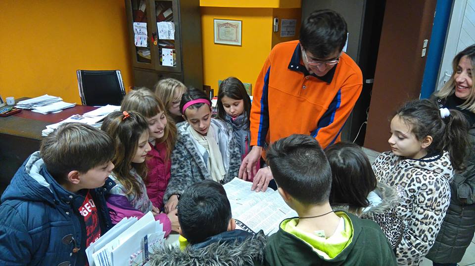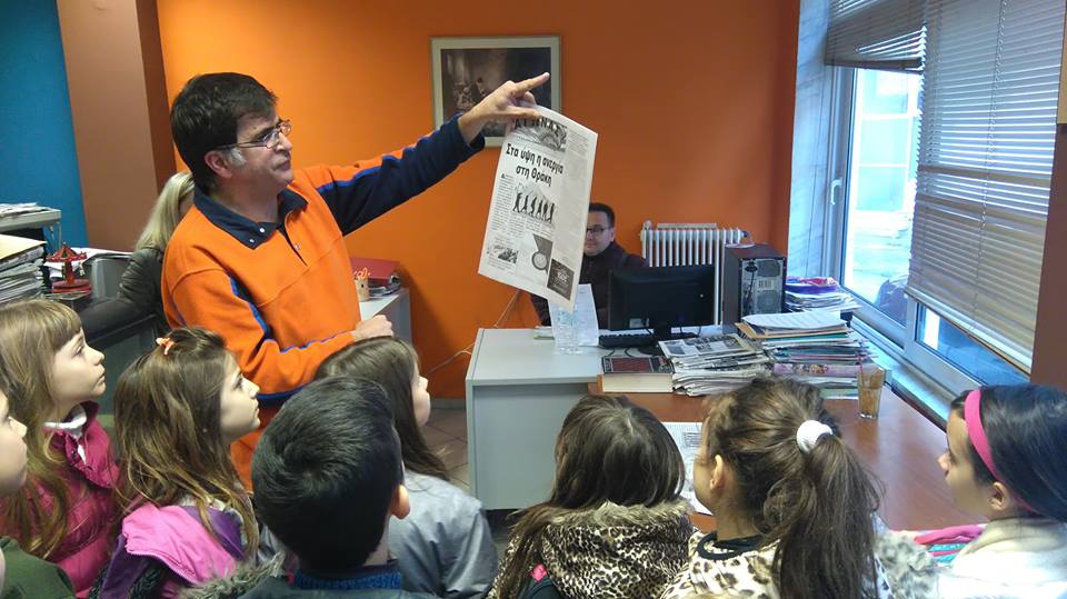 Ο εκδότης της εφημερίδας, κ. Κοσμάς Γεωργιάδης, μας ξενάγησε στους χώρους όπου γίνεται η σύνταξη των άρθρων και η εκτύπωση των ημερήσιων φύλλων. Τα παιδιά παρακολούθησαν από κοντά τον τρόπο έκδοσης ενός έντυπου μέσου ενημέρωσης, για το οποίο συζητήσαμε στο σχολείο. Φεύγοντας πήραν ως δώρο μία εφημερίδα, για να μελετήσουν καλύτερα το περιεχόμενό της.