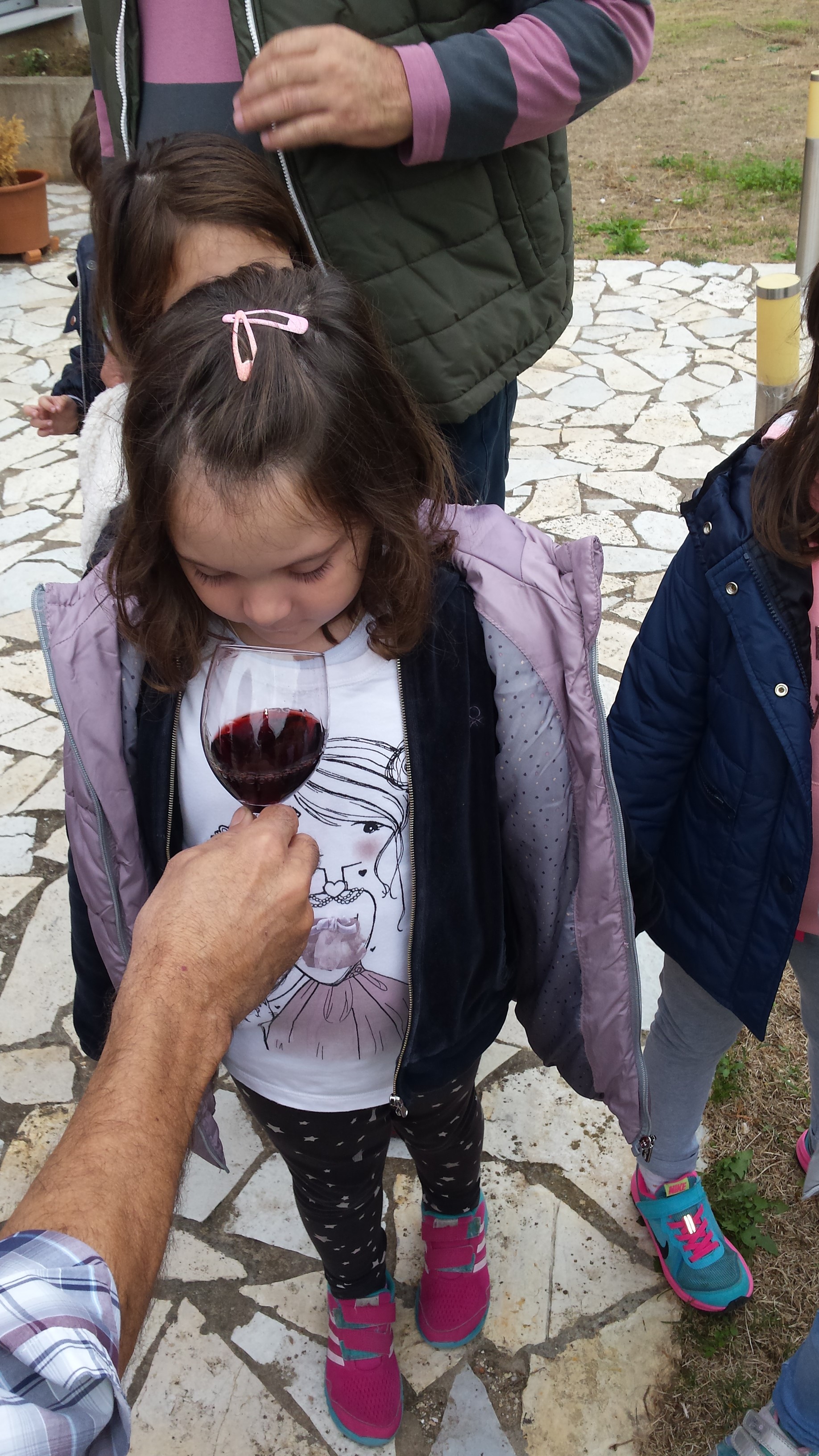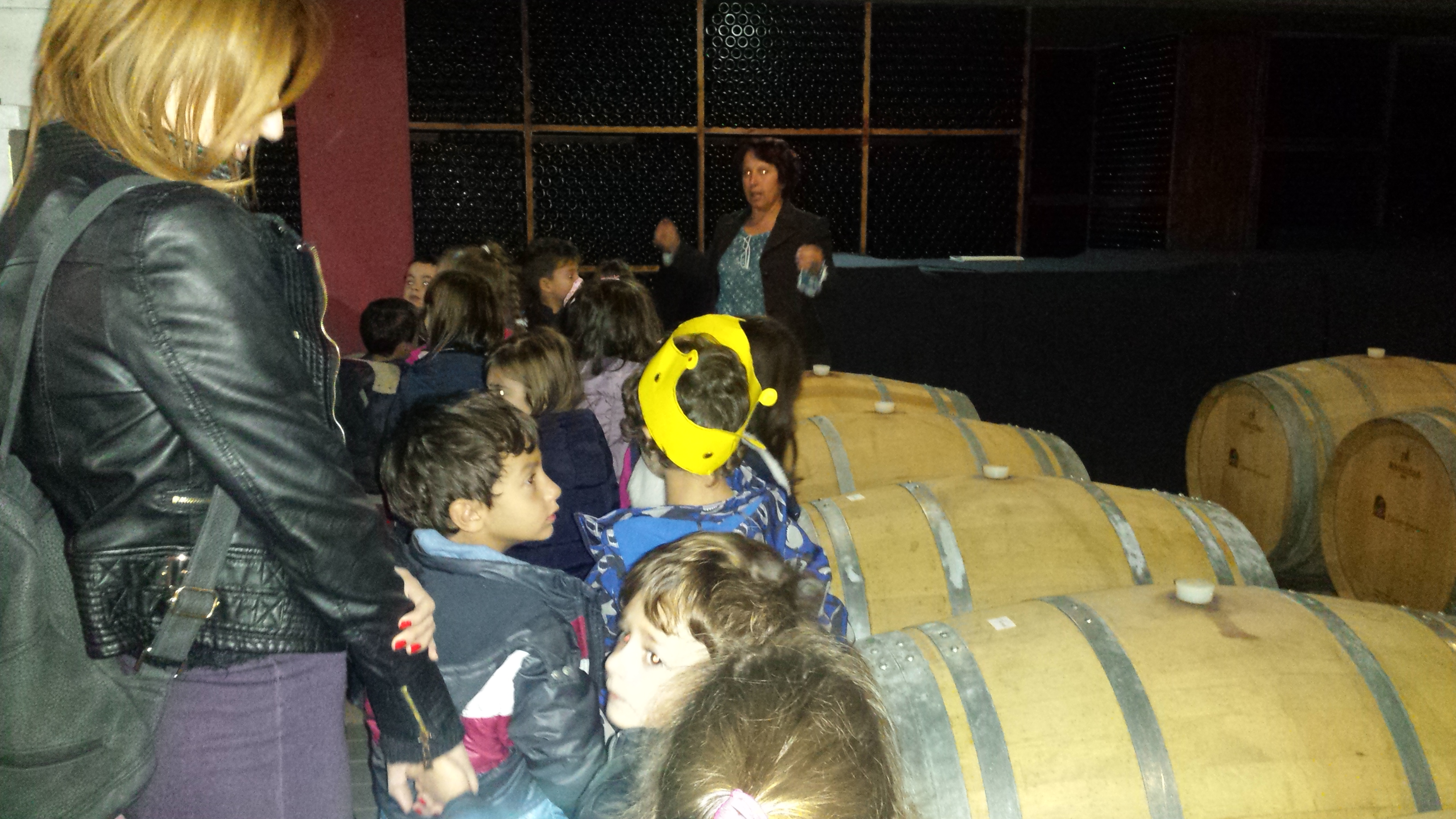 Στο νηπιαγωγείο του Αξιον, επεξεργαζόμενοι τη θεματική ενότητα του τρύγου, είχαμε την ευκαιρία να επισκεφτούμε το οινοποιείο «Κελάρι Διαλεκτό». Εκεί παρατηρήσαμε τα μεγάλα καζάνια, όπου τοποθετείται ο μούστος, κατεβήκαμε στο κελάρι όπου παρατηρήσαμε τα βαρέλια με τα κρασιά και μάθαμε τον τρόπο με τον οποίο εμφιαλώνονται. Τέλος είχαμε την ευκαιρία να μυρίσουμε το κρασί.